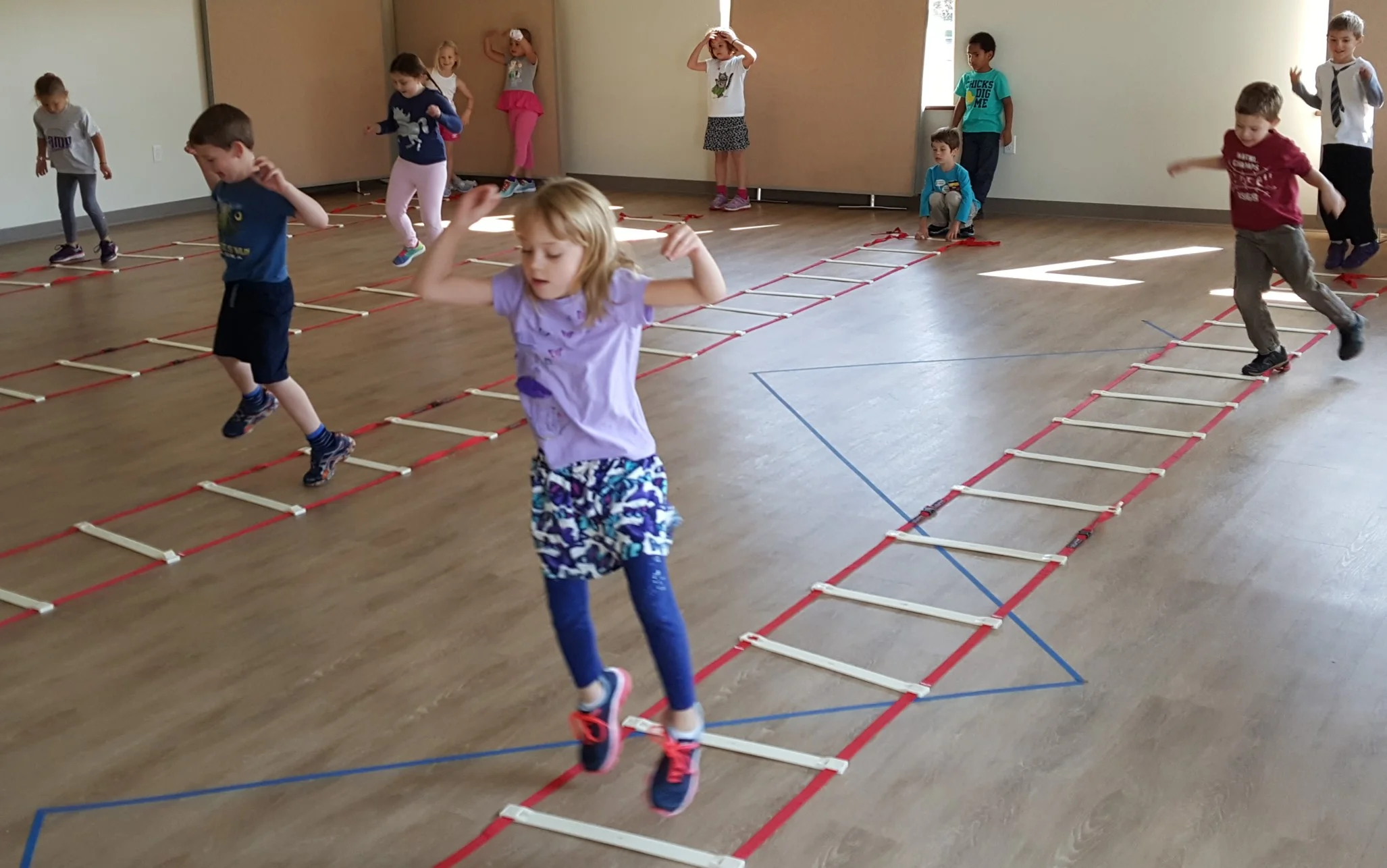 Students participate in once weekly Physical Education classes in activities such as kickball, basketball, soccer, co-operative games, and a variety of other physical activities.