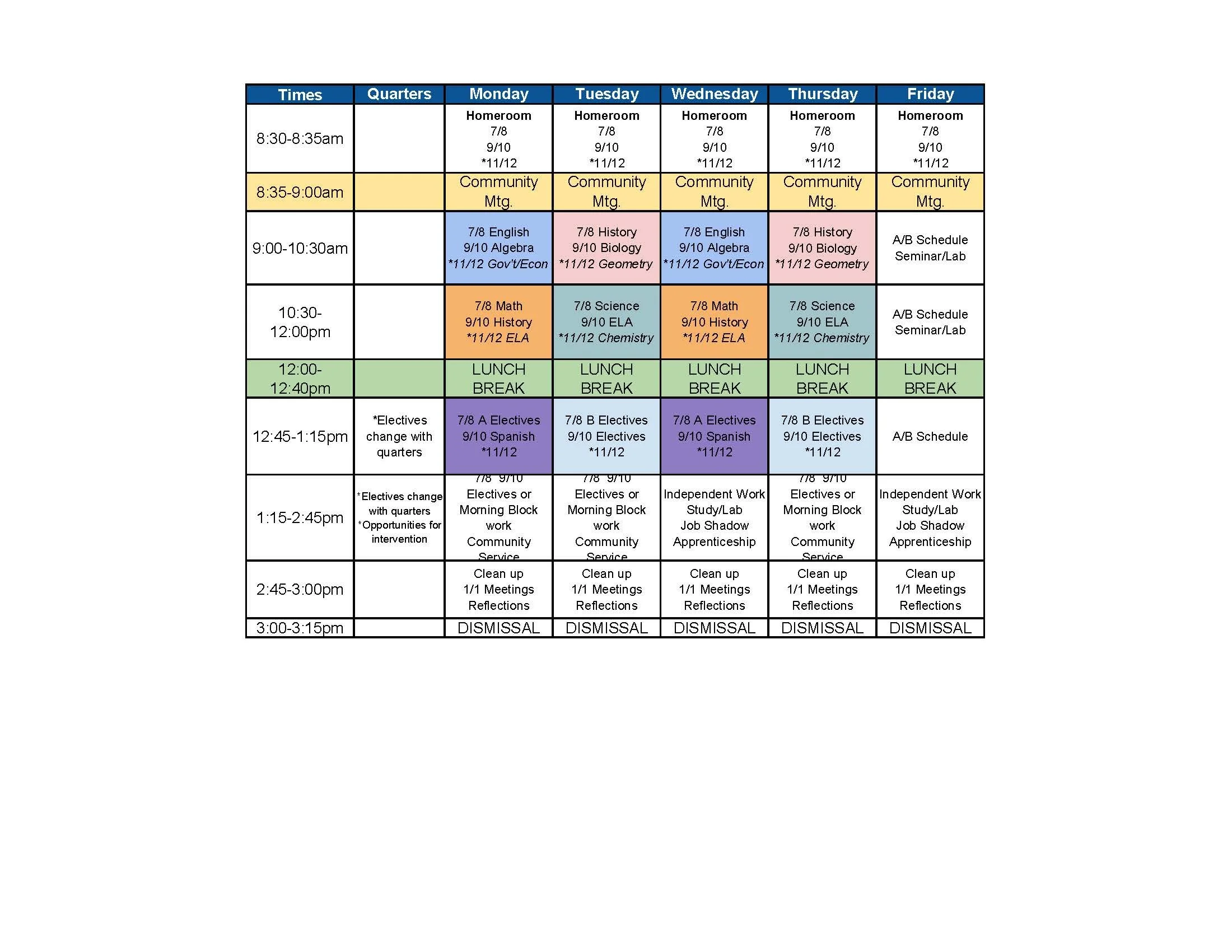 Sample Block Schedule